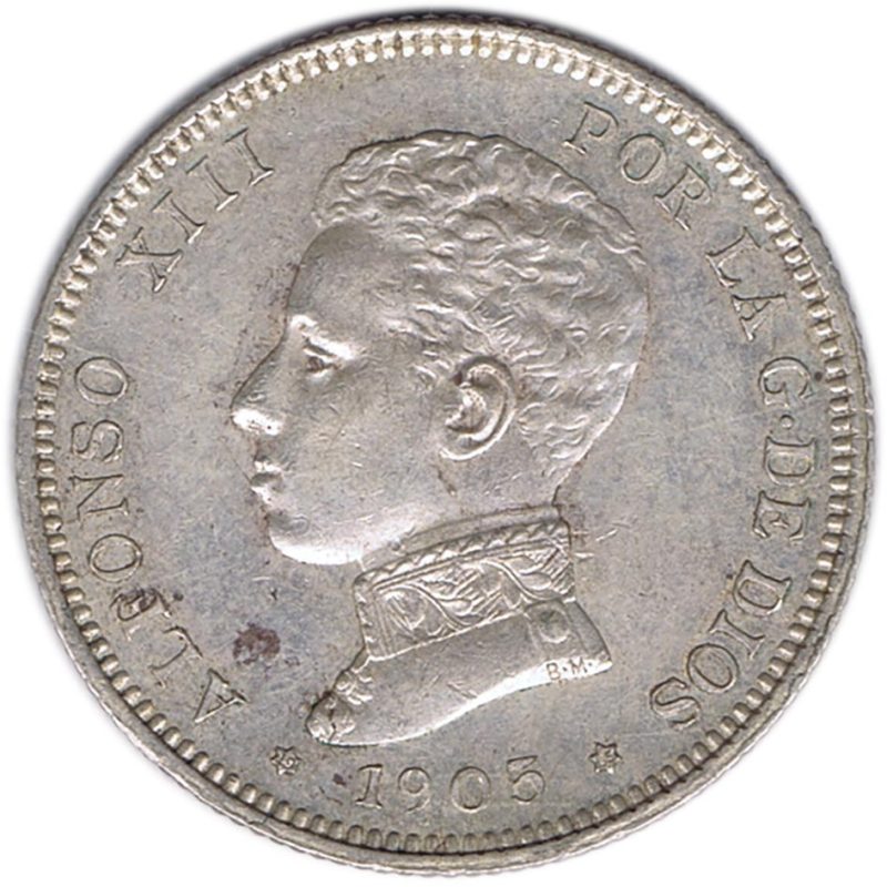 2 Pesetas Plata 1905 *05 Alfonso XIII SM V.