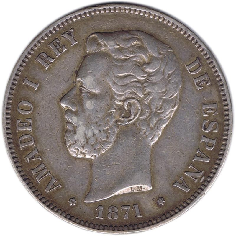 5 Pesetas Plata 1871 *71 Amadeo I SD M.