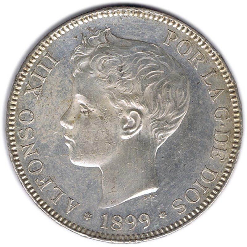 5 Pesetas Plata 1899 *99 Alfonso XIII SG V.