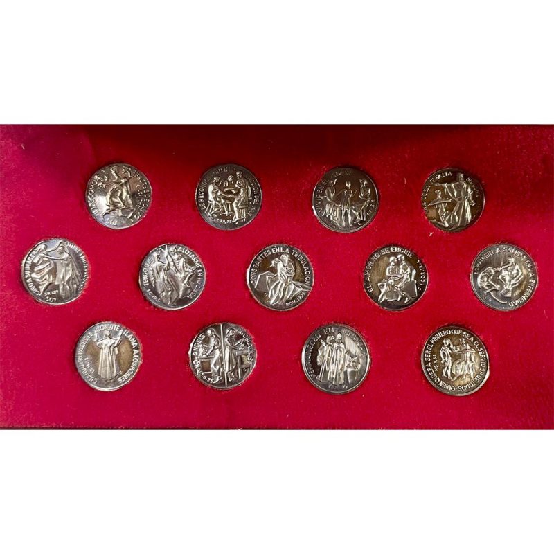 Medallas con imágenes de pasajes bíblicos en anverso y reverso.