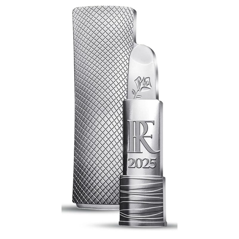 Esta moneda reproduce la forma exacta de la barra de labios Absolu Rouge de Lancôme, realzada por los motivos diseñados por la Monnaie de Paris para representar a la casa.