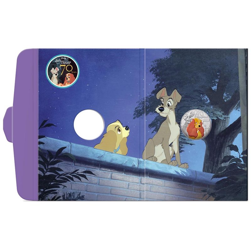 Esta moneda conmemorativa celebra el 70º aniversario de la película animada de Walt Disney, La Dama y el Vagabundo, en 2025.