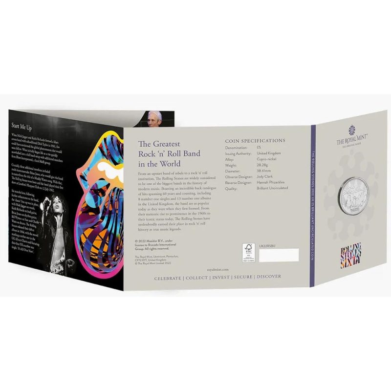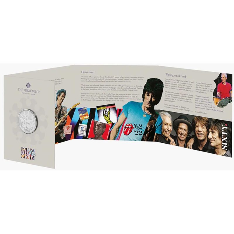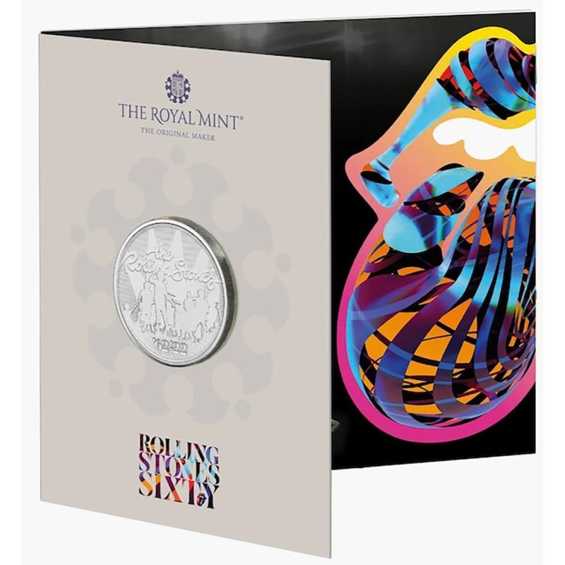 Moneda acuñada por la Royal Mint para conmemorar el 60 aniversario de The Rolling Stones, uno de los grupos más emblemáticos de la música mundial.