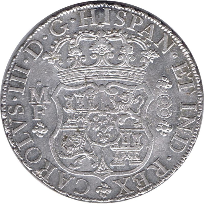 Moneda de Carlos III de Real de a 8 columnario. México. Ensayador: MF.