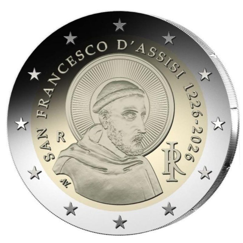 moneda conmemorativa 2 euros Italia 2026 San Francisco de Asís