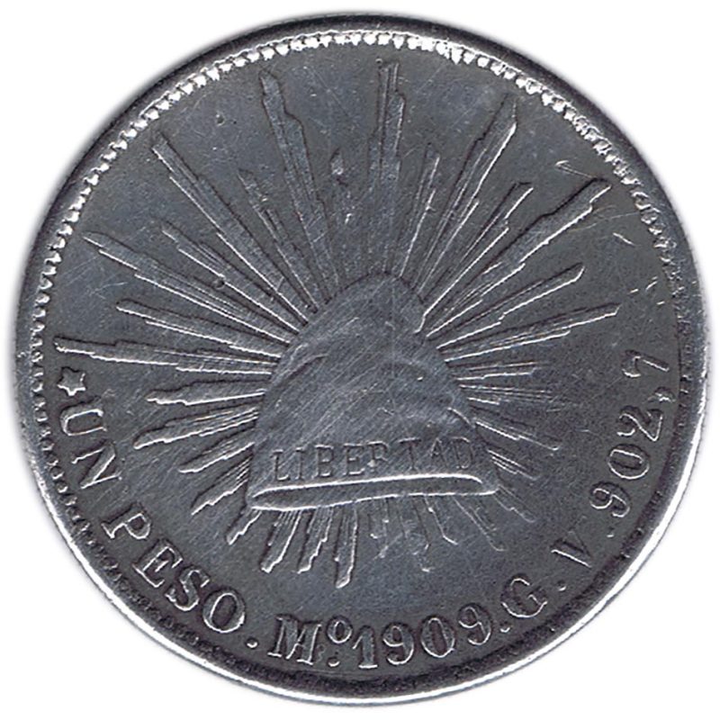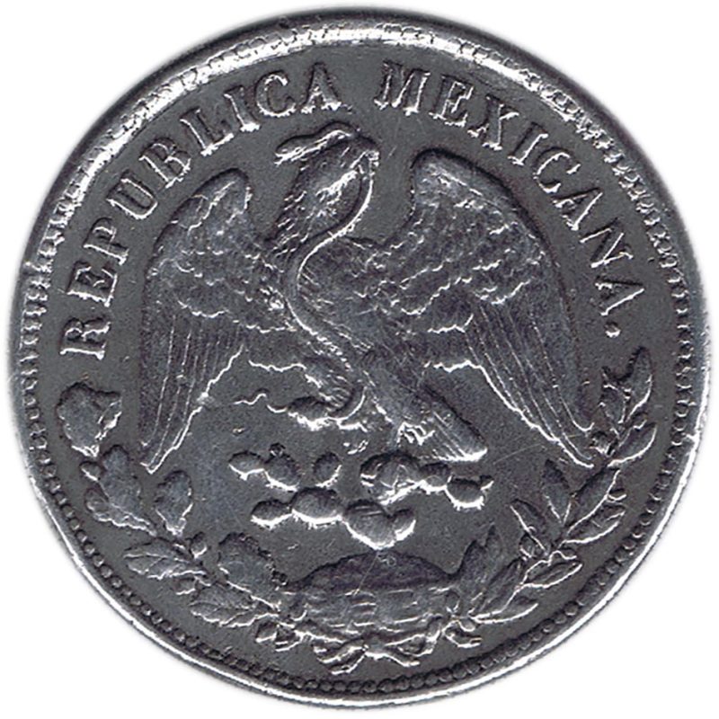 En el anverso Armas nacionales de México (águila enfrentada, serpiente en el pico).