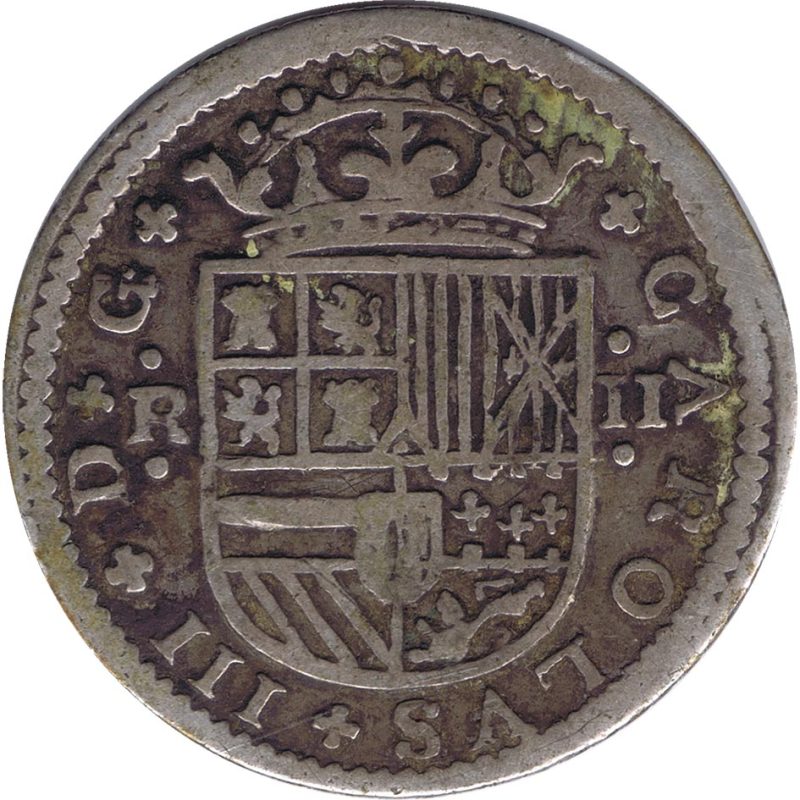 En el anverso: Escudo coronado de España.