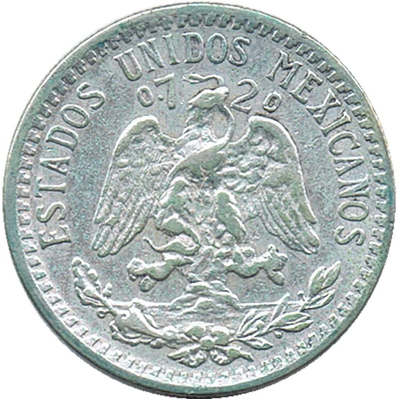 En el anverso, escudo nacional: águila con serpiente en el pico, sobre un cactus.