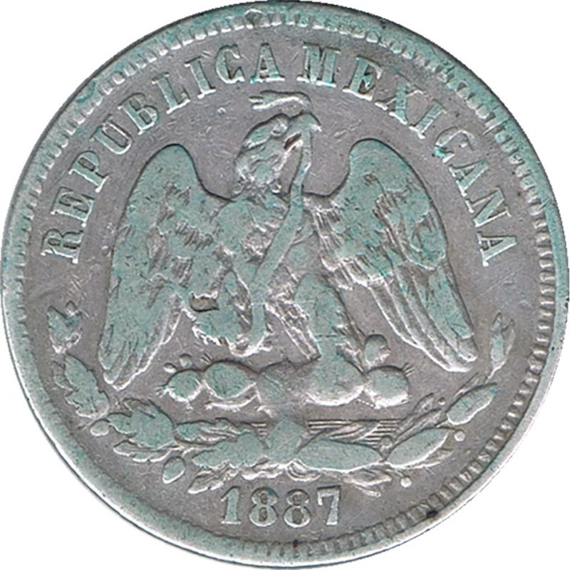 Moneda de plata 25 Centavos México 1887.
