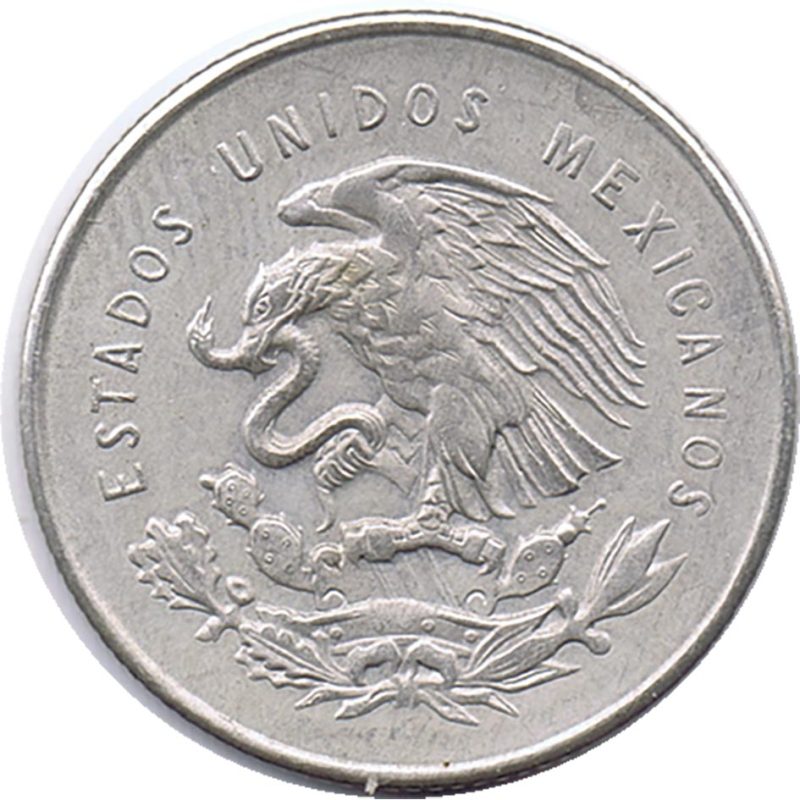 En el anverso: Águila sobre cactus con serpiente en el pico.