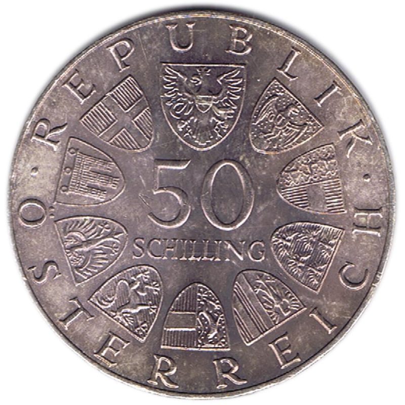 Moneda de 50 Schilling de Austria del año 1973, conmemorativa del 500 Aniversario de la Casa Bummerl.