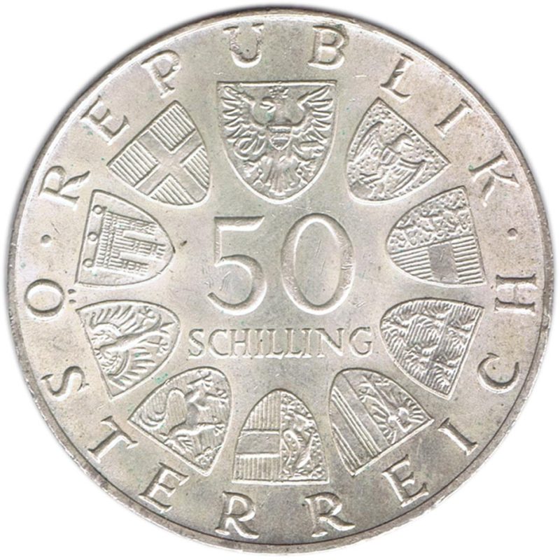 En el anverso: Los escudos de Austria rodeados por el nombre del país alrededor del borde y la denominación en el centro.