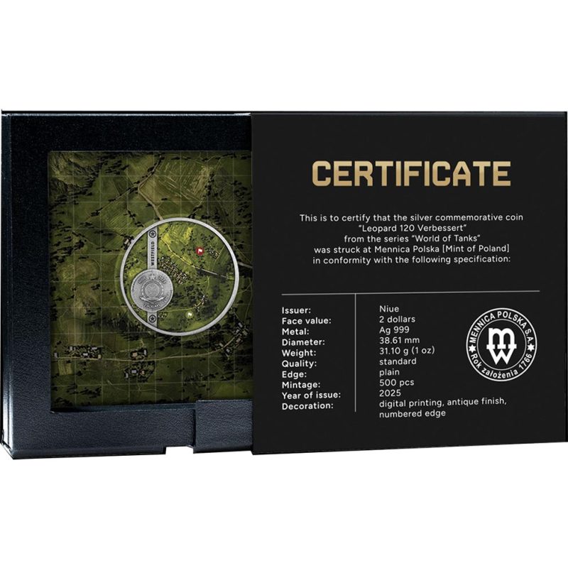 La moneda Leopard 120 Verbessert está acuñada en una onza de plata pura con una tirada limitada de 500 piezas.