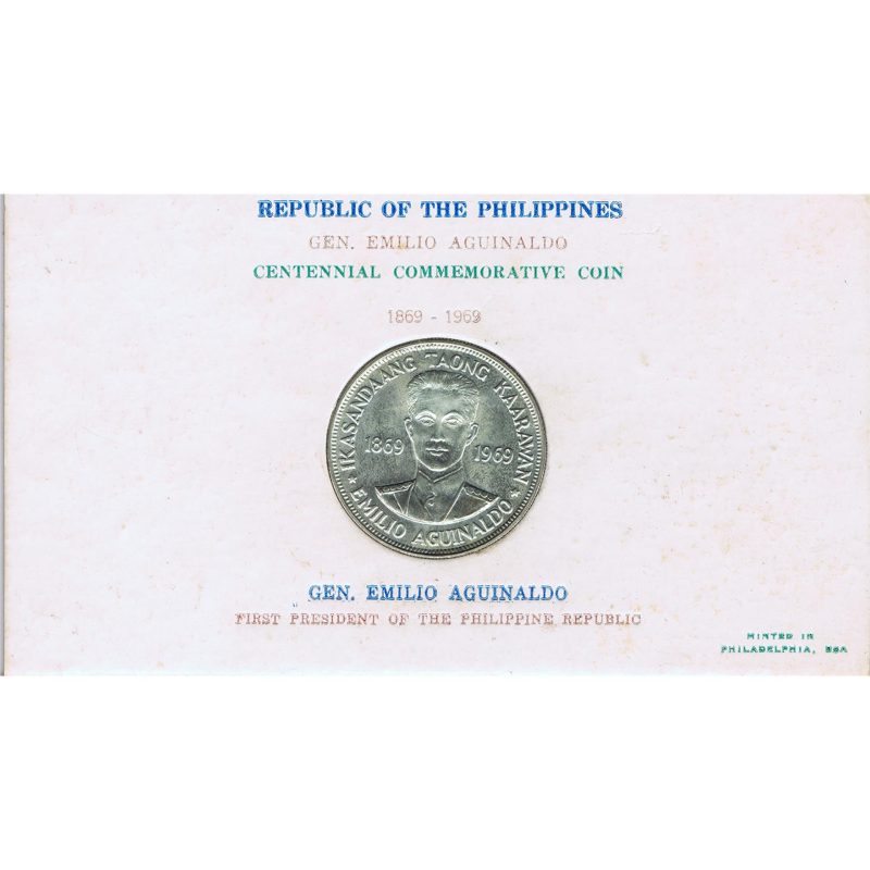 Moneda de plata de Filipinas dedicada al centenario del nacimiento de Emilio Aguinaldo, primer presidente de la República de Filipinas.