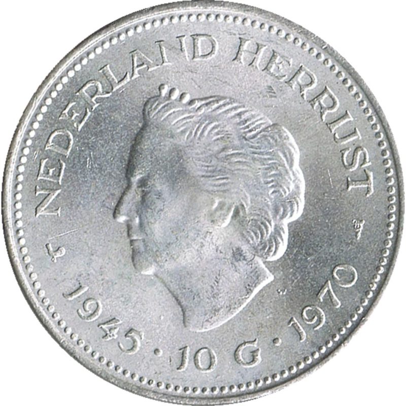 Moneda de plata Holanda 10 Gulden 1970 Liberación. SC