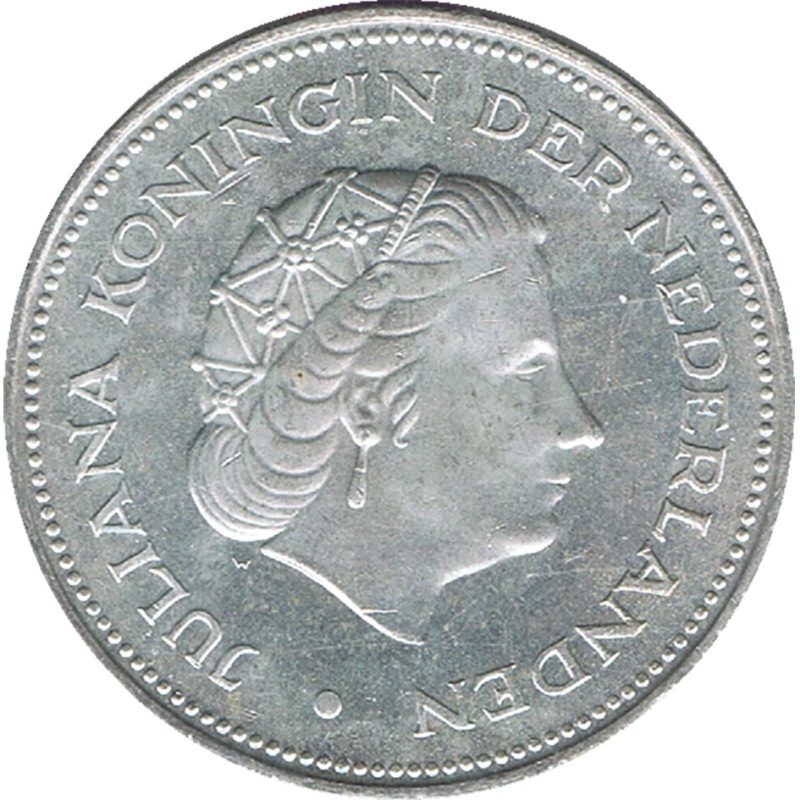 En el anverso: Cabeza de la reina Juliana mirando a la derecha.