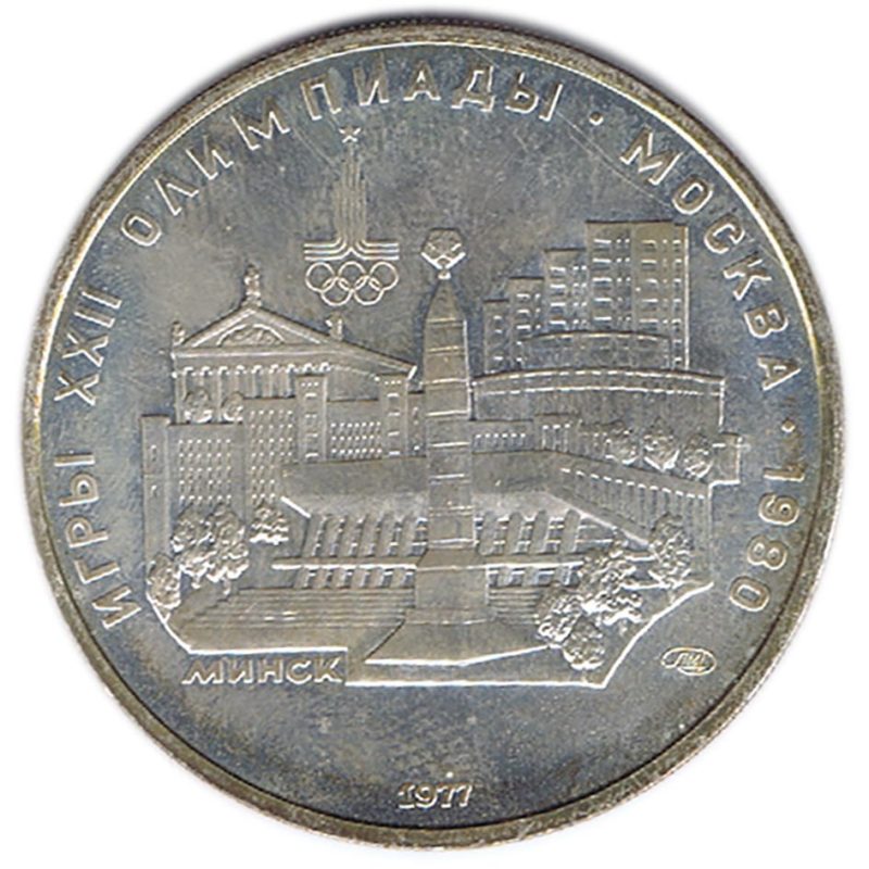 Moneda de plata Rusia 5 Rublos 1977 Minsk.