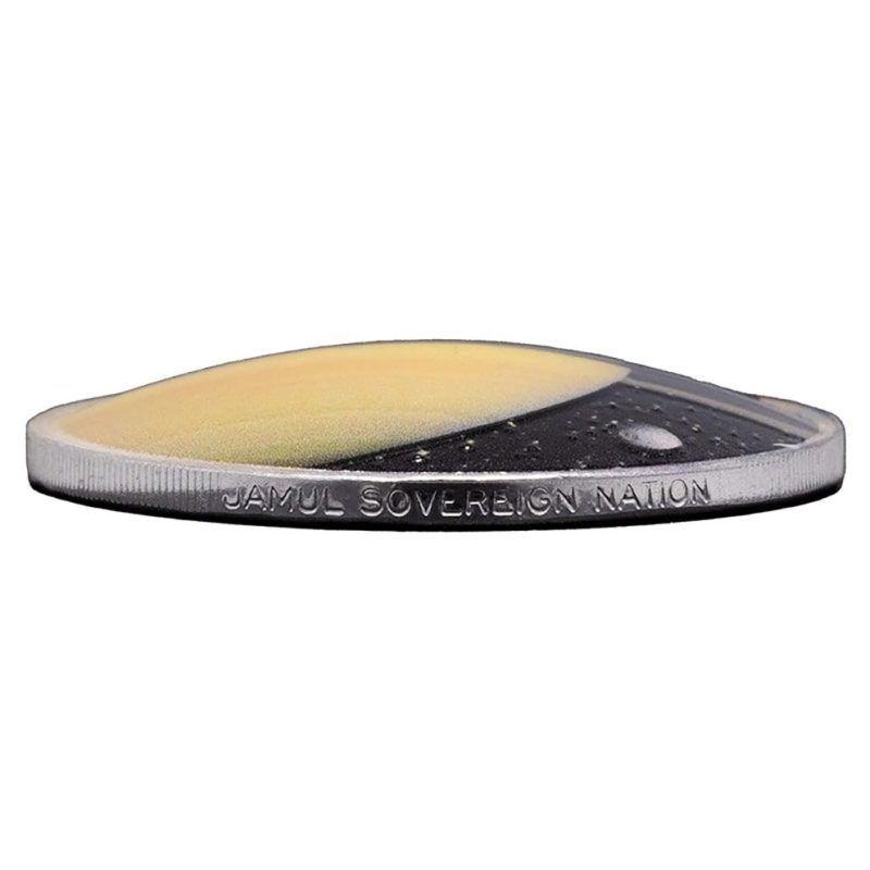 En esta edición, Saturno. La moneda tiene forma de cúpula, presenta una hermosa coloración, tiene calidad Proof y viene en una cápsula.