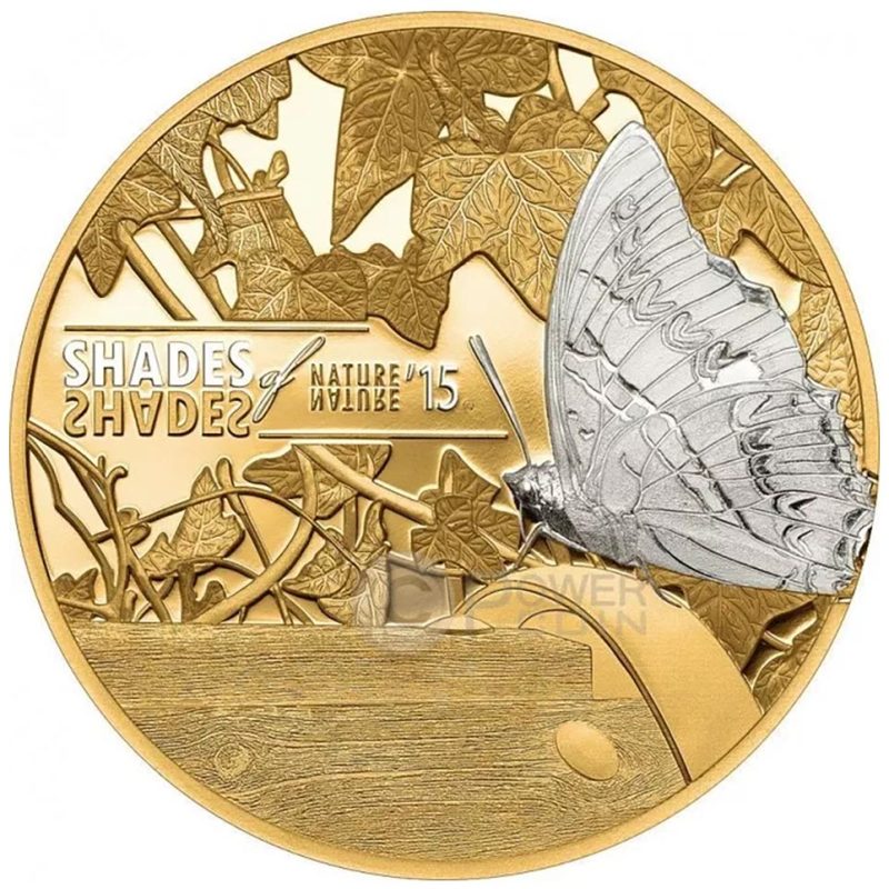Moneda de plata 5$ Islas Cook 2015. Mariposa.