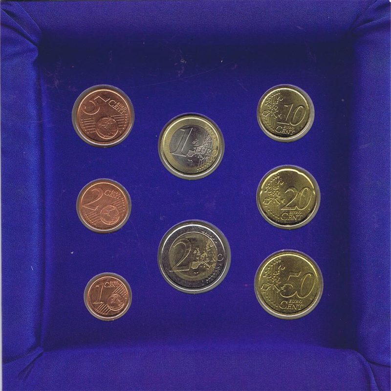 Serie de las 8 nuevas monedas de San Marino, emitidas en 2002.