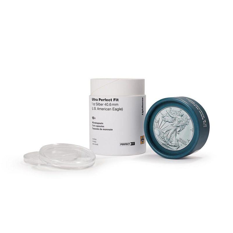 Estas cápsulas PERFECT FIT están hechas a medida para la Onza de plata de Estados Unidos, Liberty.